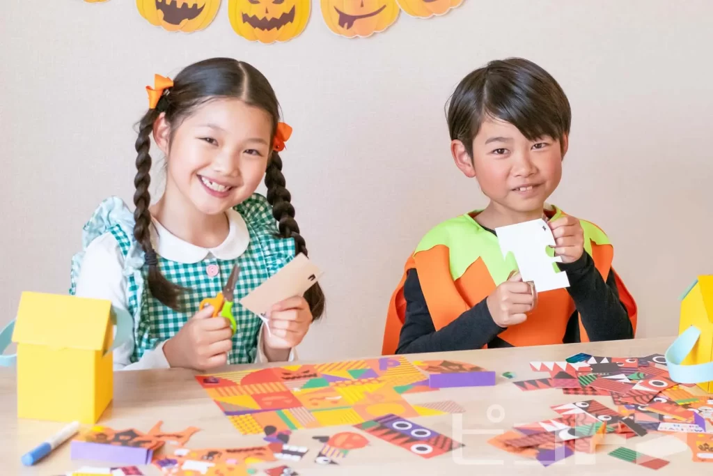 こちらはハロウィン仕様のオリジナルデザインペーパーと目玉を用意しており、モンスターが住むおうちを想像しながら楽しんで工作することができます。