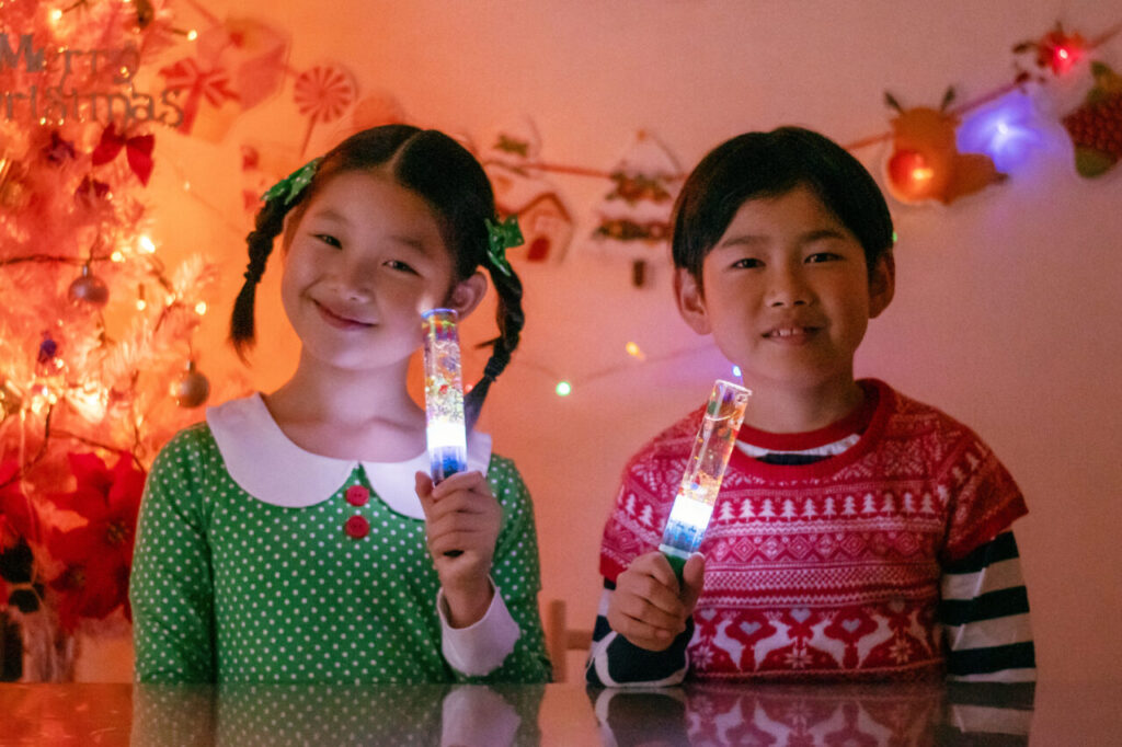 スティック状のスノードームのようなこちらの商品は、シリーズ累計2.1万本販売を突破した人気工作ワークショップ『光る!ウォータースティックライト クリスマスver.』です。
