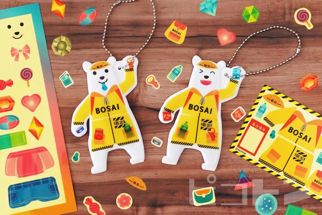 キットには防災シールがセットされており、シールを貼りながら「防災リュックには何を入れるのか」といった防災の基本を、遊び感覚で学ぶことができるワークショップです。