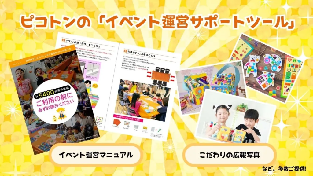 ピコトンでは、参加した子供達には特別で素敵な体験を、ご利用いただいたお客様には集客力と成約率のアップをご提供できるよう今後も様々なイベント開発に取り組んでいきます。