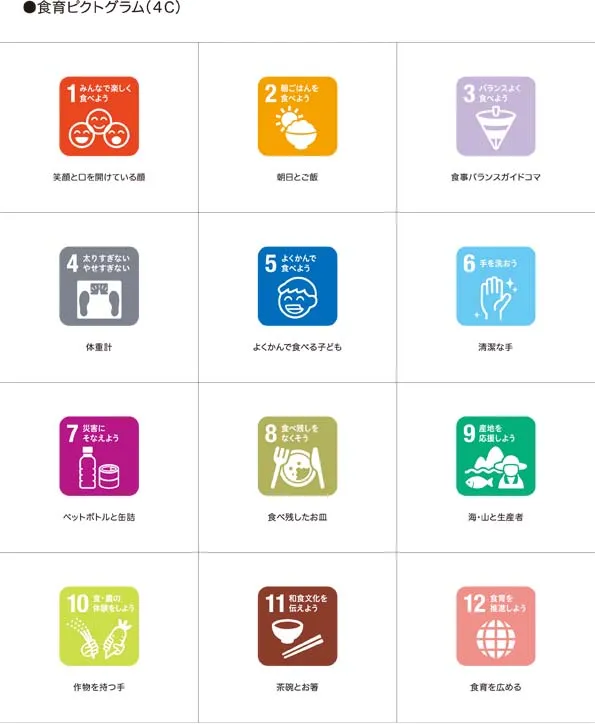 記事の後半では、食育イベントにおすすめな農林水産省が無料提供する「12種類の食育ピクトグラム」も紹介しています。