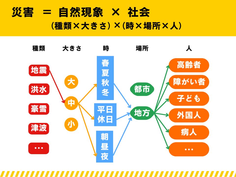 ――防災士研修で「どんな災害か」を具体的に考えないで、何となく訓練をしているケースがあったというお話が印象的でした。あのお話から、防災コンテンツのアイデアを考えました。例えば、専用のサイコロをデザインして、「平日/休日」「昼/夜」「地震/台風/火事」などの条件を決め、家族で「じゃあこのときどうする?」と話し合ってみるというのはどうでしょう?