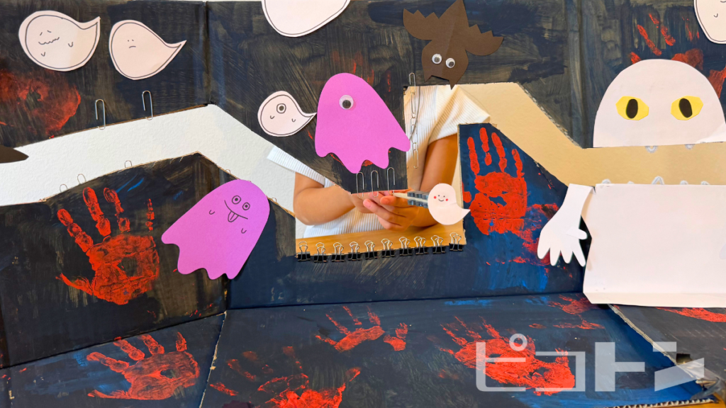 画用紙でおばけを作ってペタッ!