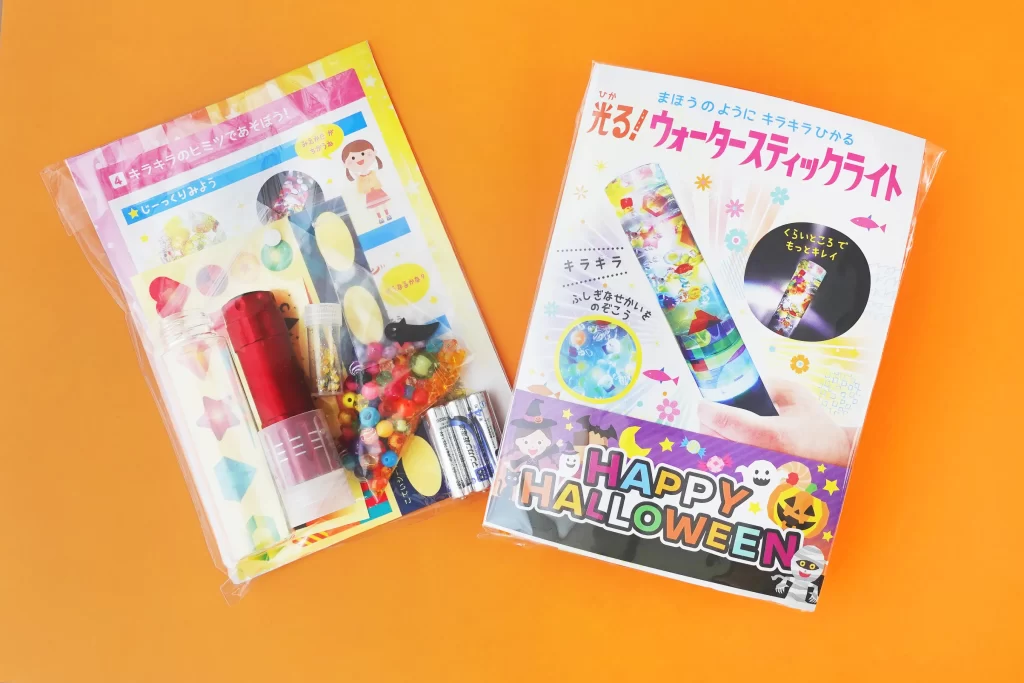 『光る!ウォータースティックライト ハロウィンver.』は、1人分の材料がセットになった工作キットでの提供です。