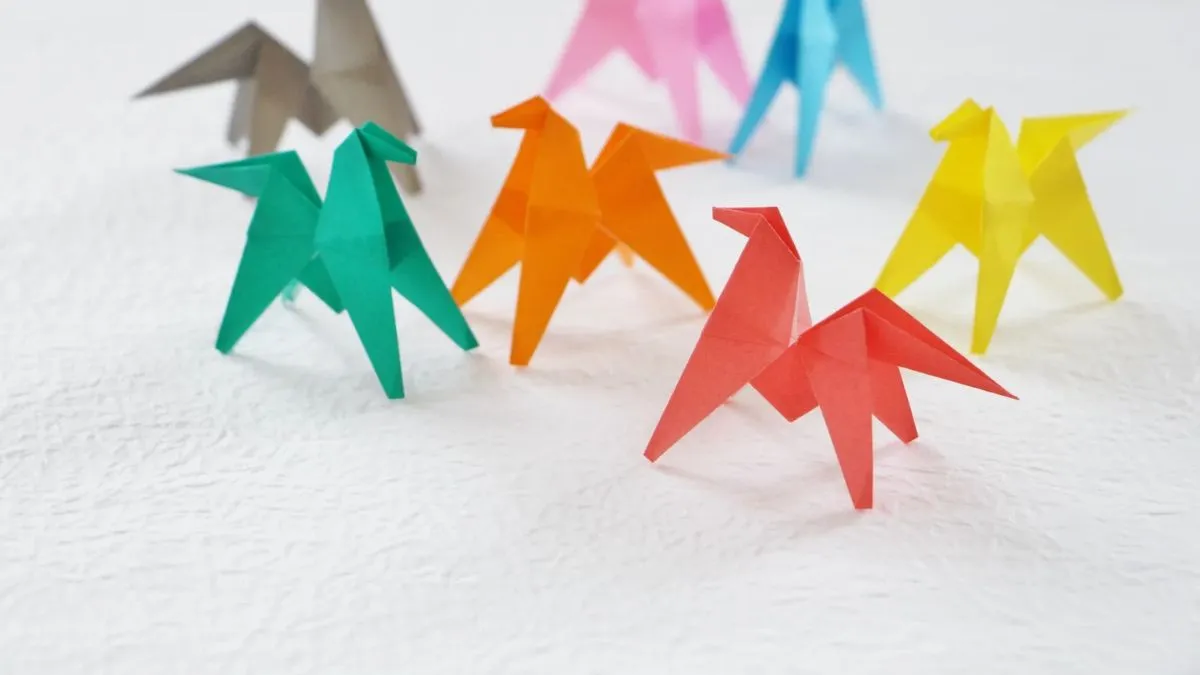 こちらの工作アイデアは折り紙1枚で作れるのに、本格的で写実性の高い馬が出来上がります。
