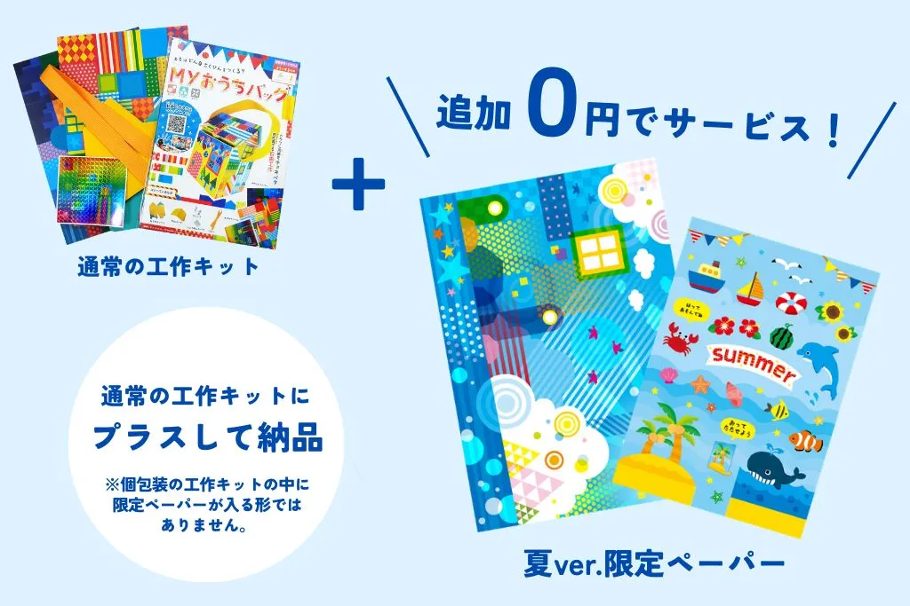 『Myおうちバッグ 夏ver.』では、通常の『Myおうちバッグ』の工作キットに追加費用0円で「夏ver.限定ペーパー」をサービス!