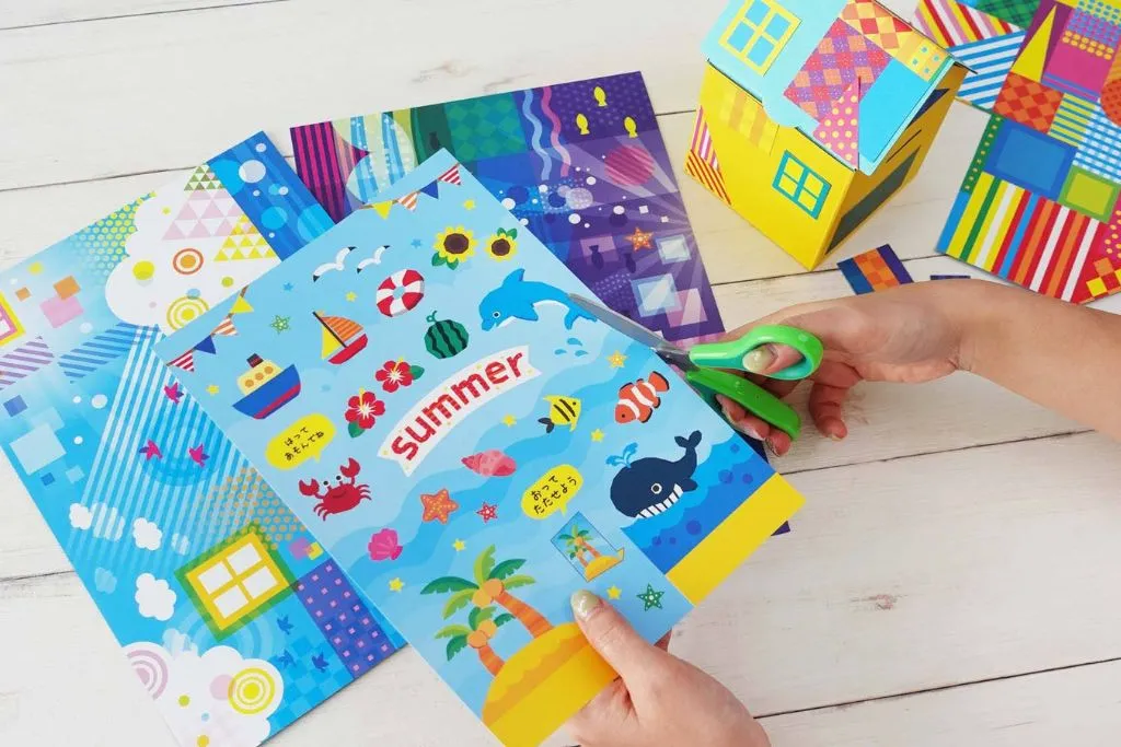 おうち型のバッグが組み立て終わったら、通常のデザインシートやシールに加えて、夏ver.限定シートを使ってデコレーション♪